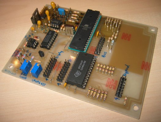 Hardware: As you can see there are only a few parts on the board. The Atmel ATmega8535 microcontroller serves as core processor which scans and processes the peripherical elements of the circuit. These are in detail: